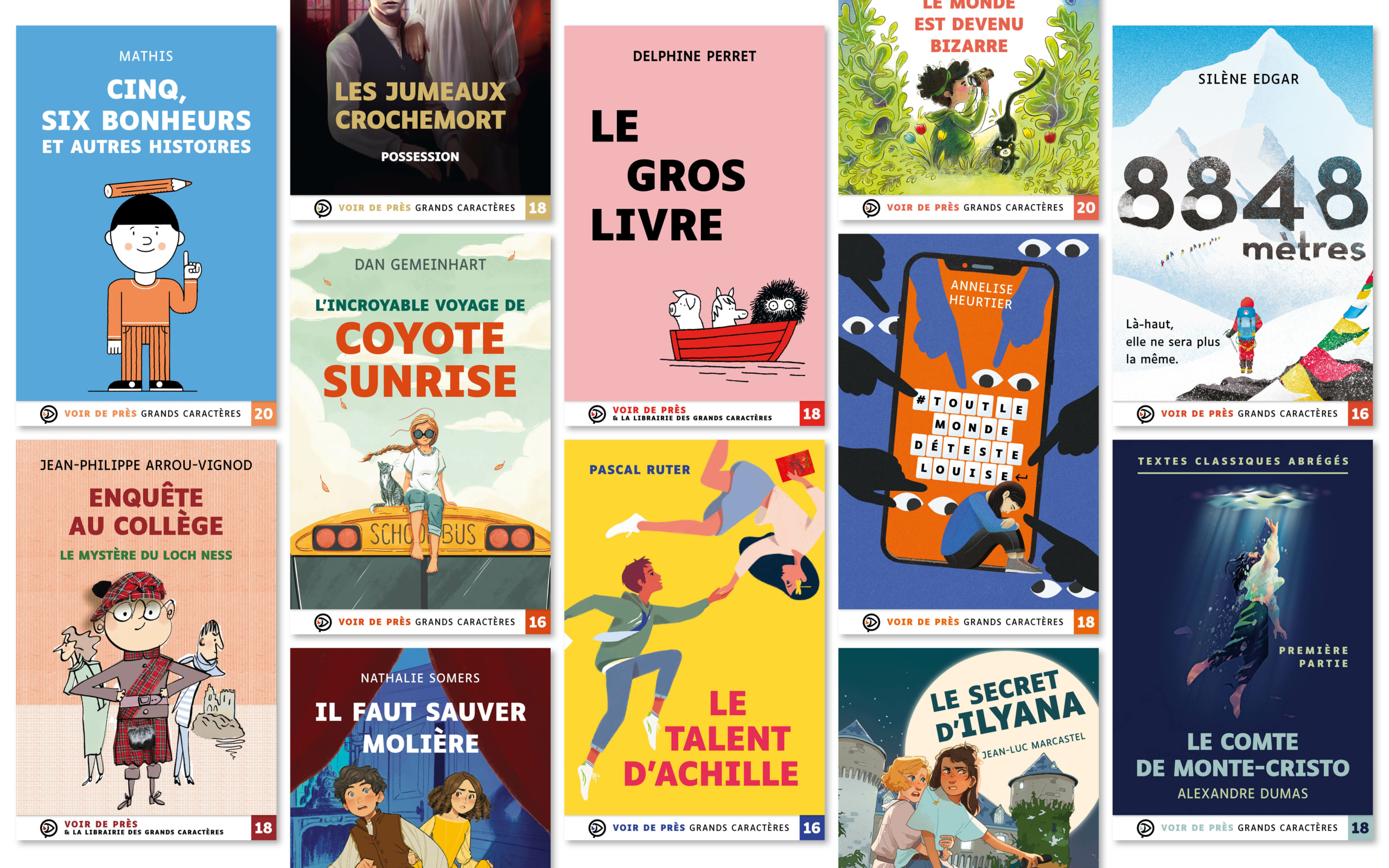 Les éditions Voir de Près proposent de la lecture adaptée en grands caractères pour tous les âges, dès 5 ans : littérature classique et contemporaine, française et étrangère. Romans, contes, nouvelles, récits, théâtre et poésie, parmi lesquels l’intégralité des œuvres au programme du bac de français.